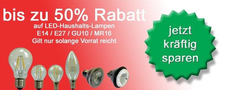 LED-Haushalts-Lampen mit den Sockeln E27, E14, GU10 und MR16