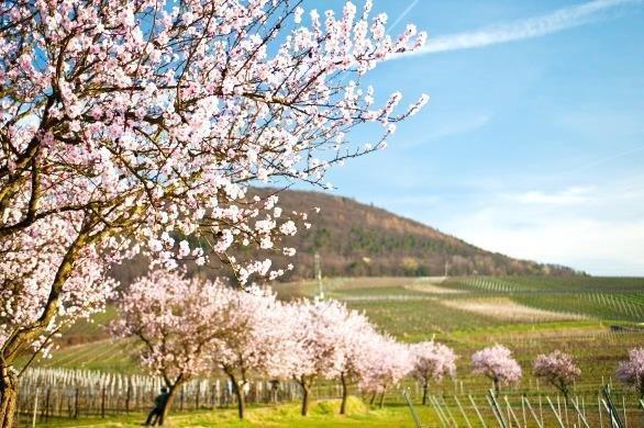 Das ganze Jahr über lockt die abwechslungsreiche Landschaft der Deutschen Weinstraße Urlauber an, doch ganz besonders und einzigartig zeigt sich die Region während der Mandelblüte. Nicht nur entspannte, sondern auch rasante Ausflüge können Besucher dank Segways, dem Oldtimerbus oder dem Schoppenbähnel erleben: Am 25. März 2018 bringt die kleine Bahn Fahrgäste zu unterschiedlichen Stationen entlang der Deutschen Weinstraße. Die Rundstrecke beginnt und endet in Herxheim bei Landau mit verschiedenen Einkehrmöglichkeiten zum Rasten und Genießen – beispielsweise bei einer Führung durch die Rebenzuchtanlage im Geilweilerhof bei Siebeldingen oder bei einer Weinprobe zum Abschluss des Tages. Die Fahrt kostet 39 Euro pro Person, weitere Informationen und Anmeldung per E-Mail unter verein-suew@herxheim.de oder telefonisch unter 07276 501107.