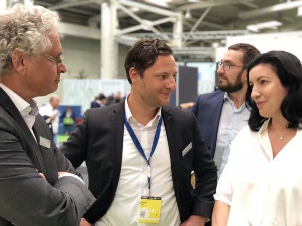 PCS Geschäftsführer Walter Elsner präsentierte Dorothee Bär, MdB den hochsicheren Handvenenleser INTUS 1600PS für die Absicherung von besonders sensiblen Unternehmens-Bereichen, wie zum Beispiel Rechenzentren oder Forschungslaboren. Auf der CEBIT 2018 zeigt PCS die Handvenenerkennung sowohl in der Stand-Alone-Variante als auch integriert in die Personenvereinzelungsanlage Galaxy Gate der Firma Wanzl. Die Handvenenerkennung identifiziert einen Mitarbeiter über das individuelle Venenmuster der Handinnenfläche und nutzt dieses biometrische Erkennungsmerkmal zur Zutrittskontrolle.