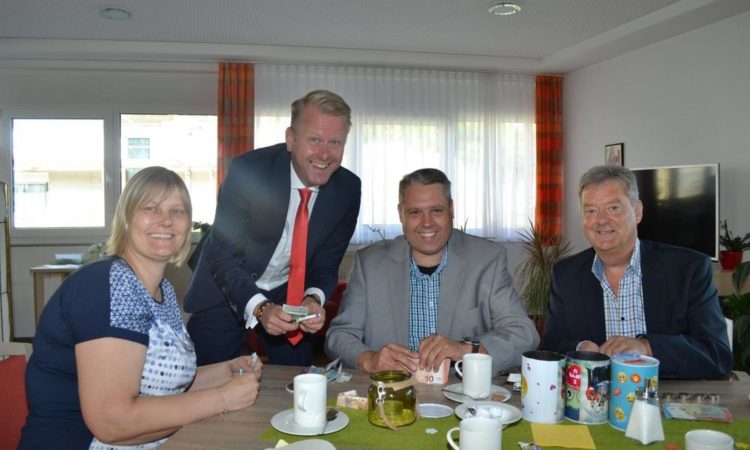 Insgesamt kamen 5.174,47 Euro zusammen. Der Betrag wurde von der Taunus Sparkasse heute auf 5.500 Euro aufgerundet. Das Geld hat Karsten Wolf gemeinsam mit Uwe Eilers und dem Filialleiter der Taunus Sparkasse, Marc-André Buchmann, an die Leiterin des Hospiz übergeben.