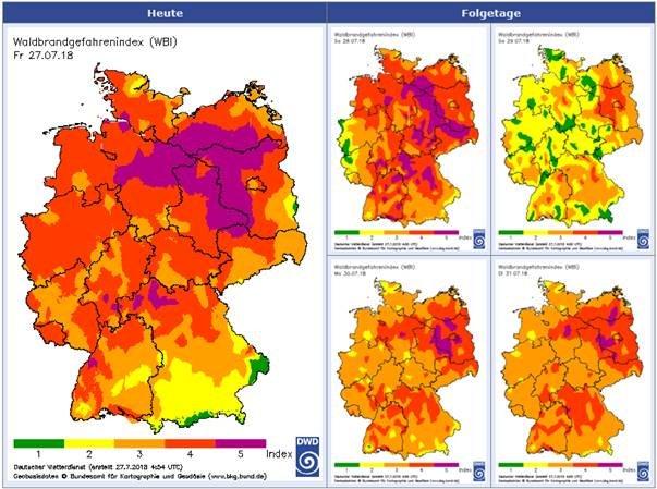 Dies bedeutet eine hohe Gefahr für Wald- und Flächenbrände. Die Feuerwehren haben bereits ihre Einsatzpläne für Waldbrände aktualisiert.