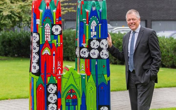 Die Dom-Skulptur im Lotto-Design, die von Künstler Klemens Hechenrieder individuell bemalt wurde, ist in den nächsten Wochen bei der WestLotto-Zentrale in Münster zu sehen.