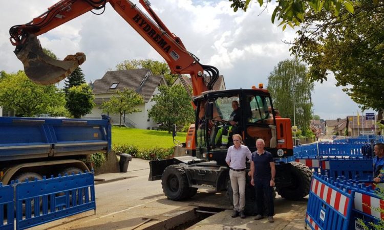 Dass man sich nach guten Erfahrungen und 1.500 störungsfreien Betr.-Std. auch in diesem Jahr wieder für einen MX Citybagger entschieden hat, freut natürlich auch den Vertriebsleiter Martin Werthenbach. Diesmal wurde es ein MX16, der aktuell auf der Baustelle in Sasbach zum Einsatz kommt. Hier wird auf einer Strecke von 500 Metern die Wasserleitung kpl. saniert. Die Kanalisation wird insgesamt vergrößert und gleichzeitig die Hauptstraße mit Gehwegerweiterung und Deckenerneuerung ausgebaut.