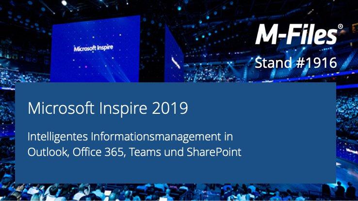 Die Konferenz Microsoft Inspire findet in der nächsten Woche vom 14. bis 18. Juli 2019 im Mandalay Bay Convention Center in Las Vegas (USA) statt. M-Files ist mit Vorträgen und einem Messestand (Nr. 1916) vertreten.