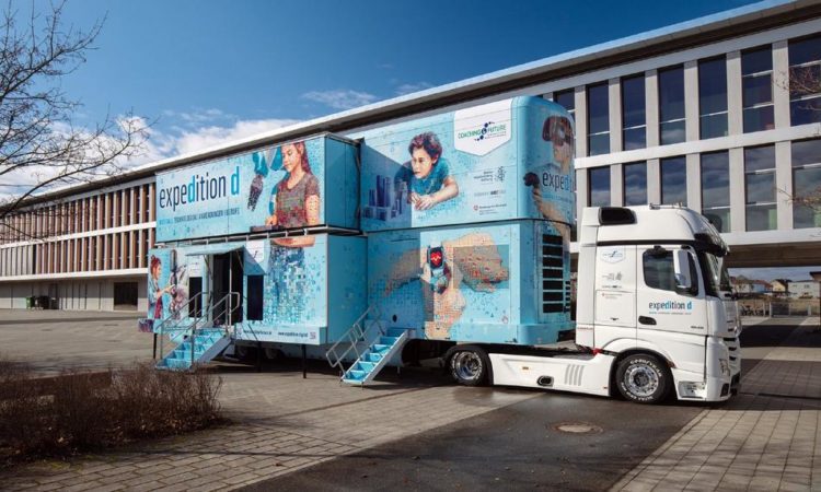 expedition d ist ein kostenfreies Angebot für alle Schularten ab Klassenstufe 7 in Baden-Württemberg und erreicht rund 11.000 Schülerinnen und Schüler pro Jahr. Im Rahmen des äußerst erfolgreichen Programms COACHING4FUTURE bildet expedition d einen vertiefenden Baustein zur Studien- und Berufsorientierung im Bereich Digitalisierung. Die Jugendlichen erwartet eine 90-minütige, spannende Expedition zu der Frage, wie die Digitalisierung unsere Berufswelt verändert und wie junge Menschen sie mitgestalten können. Interessierte Schulen können das Ausstellungsfahrzeug für einen zwei- bis dreitägigen Besuch unter www.expedition.digital anfragen. Der Einsatz von expedition d wird stets von zwei Jungakademikern begleitet und soll mit dem Tandem aus Schule und Berufsberatung abgestimmt werden.