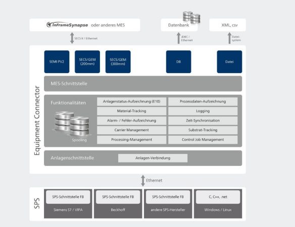 Von den vielfältigen Vorzügen der Integrationssoftware InFrame Synapse Equipment Connector profitieren aber nicht allein Fertigungsunternehmen, sondern auch die Anlagenhersteller. Sie können mit dem EQC jetzt unkompliziert und ohne große Mühe standardkonforme oder individuelle IT-Schnittstellen für ihre Maschinen realisieren und preiswert zur Verfügung stellen – ein großes Plus.