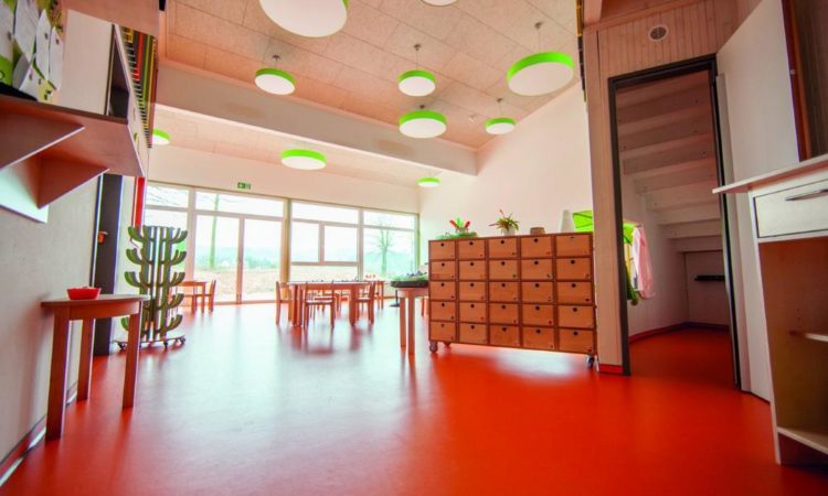 Großzügige, lichtdurchflutete Räume, helle Holzflächen und angenehme Akzente in Rot- und Grüntönen – so wirken die neuen Räumlichkeiten des RhönKinder-Hauses in Poppenhausen/Wasserkuppe. Der erste Eindruck legt nahe, dass sich Kinder hier sehr wohlfühlen. Nach nur neun Monaten Bauzeit war die neue Kindertagesstätte im Januar 2020 bezugsfertig. Genau so war es auch geplant.