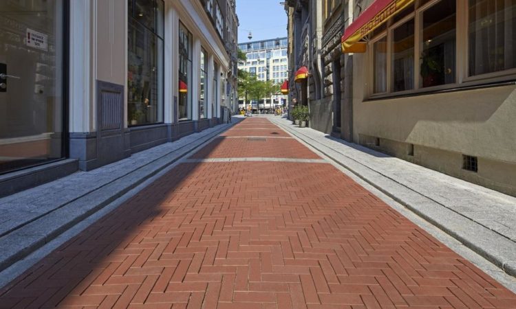 Für die Gestaltung der altehrwürdigen Straße kam der Hagemeister-Pflasterklinker in der Objektsortierung Amsterdam Rood Speciaal zum Einsatz. Der klassische rot gebrannte Ziegel ist leicht besandet und hat eine Größe von 210 x 70 x 78 mm. Um den hohen Belastungen des Straßenverkehrs Stand zu halten, wurde der Klinker in der besonders strapazierfähigen CREATAP-Version mit einer kleinen Fase verlegt. Das verwendete Format weicht von der Richtlinie des städtischen Handbuchs für die Gestaltung öffentlicher Räume ab – das Handbuch schreibt nämlich für das Zentrum Klinker im Dickformat (200 x 67 x 80) vor. Für bestimmte Orte, wie die „Nes“, wurde eine Ausnahme gemacht.