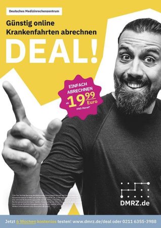 Bis zu fünf Prozent der Rechnungssumme ziehen Krankenkassen ab, wenn Abrechnungen auf Papier eingereicht werden – ärgerlich und leicht vermeidbar. Schnell und rücklaufsicher erhalten Taxi- und Mietwagenunternehmer den vollen Betrag für ihre Leistungen, wenn sie Krankenfahrten und -transporte über DMRZ.de einfach online abrechnen; möglich ist dies bereits ab monatlich 19,99 Euro zzgl. MwSt. (Flex Tarif).