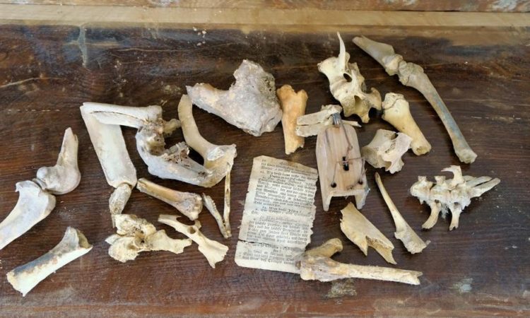 Und was hat es mit den Knochen auf sich? „Die Ansammlung ist als Küchen- oder Speiseabfall zu deuten“, meint Prof. Dr. Joris Peters, Paläoanatom an der Tierärztlichen Fakultät der LMU und Direktor der Staatssammlung für Anthropologie und Paläoanatomie in München. „Auf dem Bild sind Schaf, Rind (Kalb) und Hase oder Kaninchen zu erkennen. Menschenknochen sind nicht dabei. Interessant wäre nun zu wissen, wie das Fundgut datiert und was die zeitgleichen Aufzeichnungen zum damaligen Speiseplan im Kloster überliefern.“ Leider haben sich aus dem 18. Jahrhundert aber keine Speisepläne aus Kloster Irsee erhalten, so dass auch diese Spur nicht weiterverfolgt werden kann.