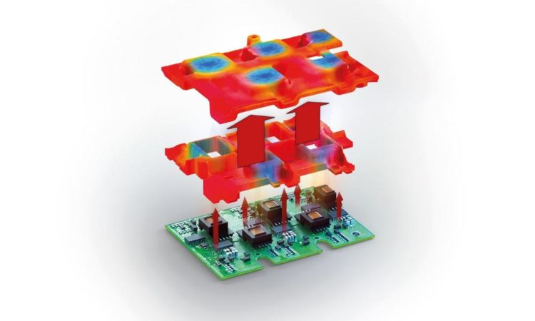 Eine weitere Anwendung für das Materials ist die gezielte Entwärmung von Steuergeräten, wie sie etwa zur Schaltung des Stromflusses zwischen Batterie und Antrieb eines Elektrofahrzeugs eingesetzt werden. Während die Leistungselektronik über das Aluminiumgehäuse entwärmt wird, strahlt die von den elektronischen Bauelementen abgegebene Wärme in der Regel nur in die Luft zwischen Leiterplatte und Gehäusewand ab. Hier kann das Silikon nun seine Vorteile voll ausspielen: Es kann als beliebiges dreidimensionales Formteil hergestellt werden und ermöglicht so den direkten Bauteilkontakt, obwohl sich die Komponenten in der Regel nicht auf dem gleichen Höhenniveau befinden. So kann der Wärmestrom direkt in das Gehäuse abfließen. Eine erste Anwendung in einem Batteriesteuergerät für ein hybridisiertes Nutzfahrzeug befindet sich bereits in der Testphase.