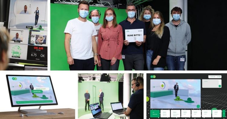 Gesendet wurde aus dem temporären Green-Screen/3D-Mixed Reality Studio des globalen Grünenthal Headquarters in Aachen, das zur Bühne für Präsentationen, Gesprächsrunden und Trainings wurde. Vor Ort waren das Führungsteam der German Sales Division und Mitglieder des globalen Boards. Alle weiteren Teilnehmenden konnten der Veranstaltung ortsunabhängig über das nutzerfreundliche Grünenthal CI gebrandete Interface beitreten. Für die erste digitale Außendiensttagung von Grünenthal setzte VOK DAMS München auf eine Open Platform Lösung, um ein maßgeschneidertes, digitales und interaktives Erlebnis zu schaffen. Neben dem zentralen Hub für Streaming und Information durfte aber auch das Thema emotionale und motivatorische Einbindung nicht zu kurz kommen.