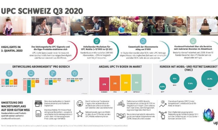 Zum Erreichen der Trendwende trugen unter anderem die Rekordverkaufszahlen im Bereich Festnetzinternet und Mobile massgeblich bei. So wurden im September über 50% mehr Verträge mit UPC abgeschlossen als im gleichen Zeitraum vor einem Jahr und über 90% mehr als vor zwei Jahren. UPC konnte somit im 3. Quartal 2020 wieder einen Abonnementenzuwachs verzeichnen. Insgesamt stieg die Gesamtzahl der Abonnemente um 5‘000. Das neue Mobile-Portfolio, welches im September eingeführt wurde, ist ein grosser Erfolg – es spricht verschiedenste Kundensegmente an und überzeugt mit einem hervorragenden Preis-Leistungs-Verhältnis. Auch das flächendeckende Gigabit-Internet auf dem UPC Giganetz hat sich etabliert. Die durchschnittliche Internetgeschwindigkeit aller Kunden in den letzten drei Monaten lag bei über 350 Mbit/s, womit UPC ihre Speed Leader-Position in der Schweiz weiter ausbaut. Des Weiteren erfreut sich die UPC TV Box weiterhin grosser Beliebtheit. Mittlerweile sind über 350‘000 UPC TV Boxen im Schweizer Markt – rund 77% der UPC Kundenbasis geniessen bereits das innovative TV-Erlebnis.
