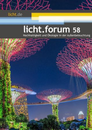 Hintergründe und Techniken stellt die Brancheninitiative licht.de in ihrer neuen Schrift licht.forum 58 „Nachhaltigkeit und Ökologie in der Außenbeleuchtung“ vor. Sie zeigt Praxisbeispiele und das Potenzial für die Energieeinsparung durch LED-Beleuchtung auf.