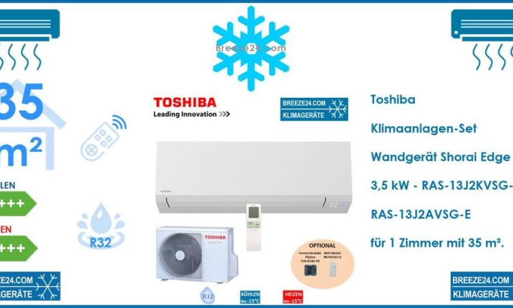 Toshiba Klimaanlage Wandgerät Shorai Edge 3,5 kW – RAS-13J2KVSG-E + RAS-13J2AVSG-E R32 für 1 Zimmer mit 35 m²