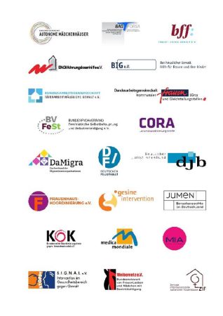 Mitgliedsorganisationen: BAG Autonome Mädchenhäuser, BAG FORSA e.V., BAG kommunaler Frauenbüros, BAG Täterarbeit Häusliche Gewalt e.V., BAG Wohnungslosenhilfe e.V., bff – Frauen gegen Gewalt e.V., BIG e.V., BVFeSt e.V., CORA – stark machen e.V., DaMigra e.V., Deutscher Frauenrat e.V., Deutscher Juristinnenbund e.V. (djb), Frauenhauskoordinierung e.V., GESINE Intervention e.V., JUMEN e.V., KOK e.V., medica mondiale e.V., MIA e.V.i.G, S.I.G.N.A.L. e. V., Weibernetz e. V., Zentrale Informationsstelle Autonomer Frauenhäuser