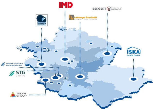 Die Deutsche Infrastruktur und Netzgesellschaft (DING) mit Sitz in Bochum steht für die hohe Qualität und die effiziente Erstellung der Infrastruktur für die Bereiche Telekommunikation (Glasfaser, FTTH Inhaus, Mobilfunk), Energie (Fernwärme, Strom, eMobility) und Versorgung (Gas, Wasser, Pipeline) in Deutschland. Zu den sechs nachhaltig in der Branche etablierten Portfoliounternehmen gehören die STG-Gruppe, Leinberger Bau, ISKA Schön, IMD, Reinhard Rohrbau und die Bergert-Group. Diese gelten als Branchenführer in ihrer Region und stehen für Fachkompetenz, langjährige Marktexpertise und Erfahrung in ihren Leistungsbereichen. Die DING beschäftigt über 1.000 Mitarbeiter und hat 2020 konsolidierten Gesamtumsatz von mehr als 200 Millionen Euro erzielt. Weitere Informationen: https://ding-holding.de/