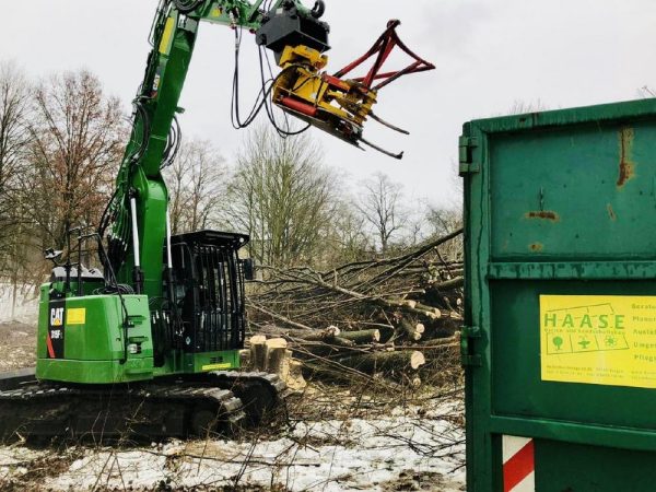 Dabei helfe die Maschinenausstattung, Gartenträume umzusetzen. „Für jede Tätigkeit haben wir das passende Gerät“, fügt die junge Unternehmerin hinzu. Das sind Cat Minibagger, wie ein 300.9D, drei 301.7D, zwei 301.8, ein 304C CR, ein 305.5E CR, ein 308E2 CR, ein Kettenbagger 315F L, ein Mobilbagger M313D, drei Radlader 906M sowie ein Telehandler TH414C. Auch im Straßenbau sind diese präsent, wie sich anhand eines 906H, 906H2 und 301.7D zeigt. Aufgewertet werden die Baumaschinen durch einen Aufreißzahn, einen Mulcher oder eine Baumschere.
