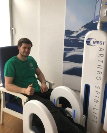 Ausfallzeiten gering halten, damit das Team nicht lange auf seine Leistungsträger verzichten muss, das ist auch das Ziel von Sportmedizinern wie Dr. René Toussaint, dem Mannschaftsarzt der Handballmannschaft des SC DHfK Leipzig. Dabei setzt er auf modernste Behandlungsmethoden wie z. B. auch die MBST Kernspinresonanz-Therapie. Zurzeit wird Rückraumspieler Martin Larsen nach einem Trainingsunfall mit der Therapie behandelt, die auch schon seinen Mannschaftskollegen Philipp Weber und Maciej Gebala geholfen hat.