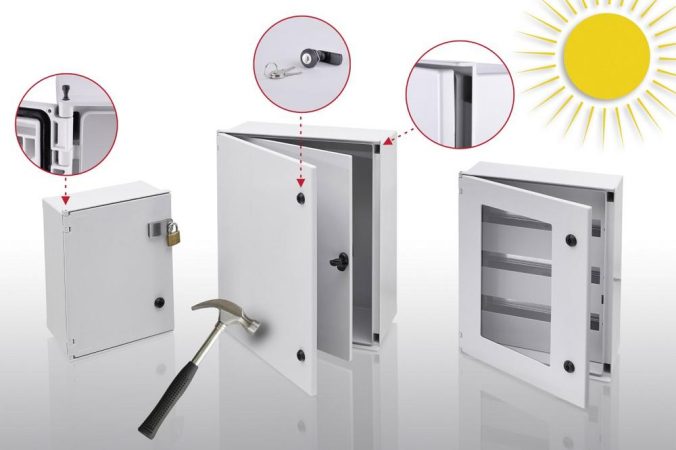 Mit den neuen Polysafe-Gehäusen aus glasfaserverstärktem Polyester bietet BOPLA eine Gehäuseserie für den Innen- und Außeneinsatz mit extrem hoher mechanischer Beständigkeit gegenüber Chemikalien und UV-Einstrahlung. Dank eines Einbruchschutzsystems eignen sich die Schaltkästen auch für die Installation im öffentlichen Bereich. Die leichten und gleichzeitig besonders robusten Kleinschaltschränke mit einer Schutzart bis IP66 sind in acht Größen lieferbar.