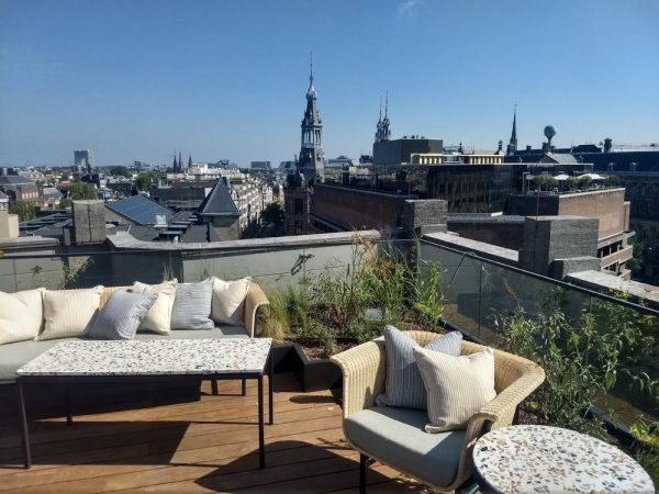 Das Soho House ist ein wunderbares Beispiel dafür, was in dicht bebauten Städten möglich ist, um alte Gebäude wieder mit Leben zu füllen und dabei einen riesigen Mehrwert zu erzielen. Aus diesem Grund war das Soho House eines von neun nominierten Projekten für den Geurt Brinkgreve Preis 2018. Dieser Preis gilt Amsterdamer Renovierungs- und Sanierungsprojekten, welche zudem kulturhistorischen Werten gerecht werden. Das Soho House ist nicht nur ein Gewinn für seine eigenen Mitglieder, sondern auch für die Öffentlichkeit, die zum Erdgeschoss freien Zutritt hat – dort befinden sich Cecconi’s Restaurant sowie Cowshed Spa. Und Soho House leistet dank seines Retentions-Gründaches einen wertvollen Beitrag in Sachen Hochwasserschutz in Amsterdam. Wasser prägt seit jeher den Charakter der Stadt mit ihren berühmten Grachten und Wasser ist zugleich die große Gefahr. So findet Amsterdam mit Retentions-Gründächern neue Lösungen.