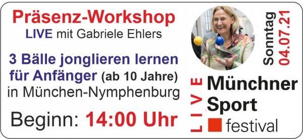 In diesem Live-Workshop werden absolute Anfänger in verblüffend kurzer Zeit das Grundmuster der Dreiball-Jonglage erlernen. Hierzu sind keinerlei Vorkenntnisse erforderlich. Das Mindestalter sollte 10 Jahre sein. Der Kurs ist für Kinder und Erwachsene.