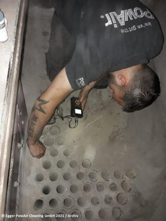 UND: Das Metall ist durch die Egger PowAir Reinigung geglättet, vergütet und verdichtet worden. Das Reinigungs-Intervall wird dadurch länger. Und das spart viel Zeit, weil die Abschaltungen weniger oft vorgenommen werden müssen. Und das spart Geld. Denn größere Reinigungs-Intervalle von Industrieanlagen sparen Reinigungskosten.