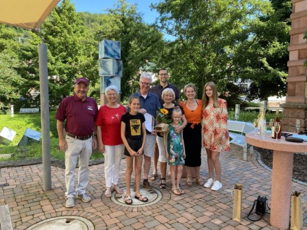 Bereits zum 30. Mal verbrachte das Ehepaar seinen Urlaub im Trifelsland. Besonders schätzen Sie die Ruhe und Erholung in ihren Urlauben in Annweiler-Gräfenhausen. Mit einem Weinfuchs, einem Präsent aus der Region sowie einer Urkunde zeichnete Erwin Unger die Familie für ihre langjährige Treue aus und verriet dabei so manche Geschichten über Annweiler und das Trifelsland.