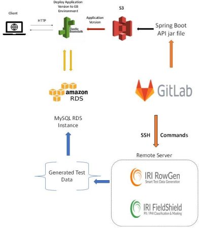 Die IRI-Jobskripte in dieser Demonstration lieferten sichere Daten für Tests nach der Bereitstellung. Die in dieser Demonstration eingesetzte API würde später diese neu generierten Datenzeilen aus der AWS-Testdatenbank (DATASOURCE1) als Teil des Testprozesses nach der Bereitstellung abrufen.