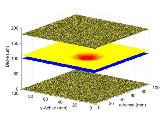 Selbst wenn die Schichtdicken sehr klein, das heißt unter 10 µm sind, helfen intelligente Methoden der Signalverarbeitung weiter und garantieren eine hohe Reproduzierbarkeit der Ergebnisse. Fällt die gewünschte Sperrschichtdicke unter den vom Anwender festgelegten Toleranzbereich wird dies, wie in der Abbildung zu sehen, vom System erkannt und angezeigt. Damit werden teure Produktreklamationen verhindert. Nebenbei erhält der Hersteller wertvolle Informationen, die für die Optimierung von Prozess und Produkt sehr hilfreich sind.