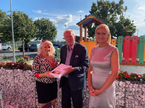 Stellvertretend auch für den Bürgermeister von Hegyeshalom, László Szöke, der zurzeit in Urlaub weilt, übergab Schulte-Kemper das Umweltschutzgutachten an die Bürgermeisterin von Bezenye, Dr. Erika Márcus. Beide zeigten sich erfreut darüber, dass in diesem Gutachten jetzt klargestellt wurde, dass es den Verhinderungsgrund für weitere Bauarbeiten von rund neun Monaten nicht gibt. Im Mittelpunkt steht hier das vermutete Vorkommen einer Großtrappe, die aber, wie der Bürgermeister und die Bürgermeisterin schon vorher schriftlich mitgeteilt hatten, in diesem Bereich gar nicht vorkommt. „Auf der einen Seite ärgert es uns, dass wir hier eine Zeitverzögerung hinnehmen müssen, auf der anderen Seite freut es uns, dass nun endlich Klarheit herrscht“, sagte Schulte-Kemper.