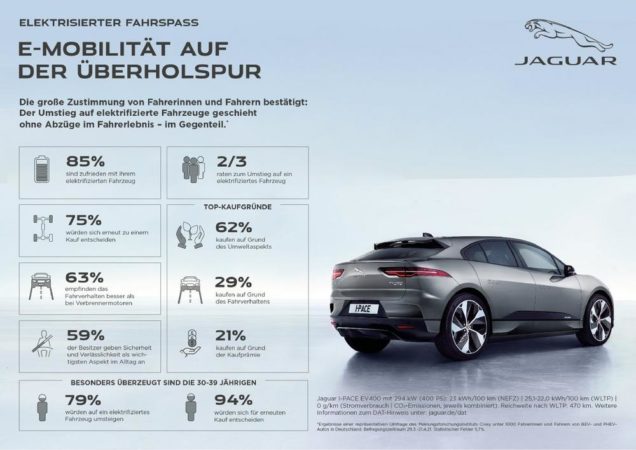 Elektromobilität ist ein wichtiger Bestandteil in der Mobilität der Zukunft, doch Fragen rund um die vorhandene Ladeinfrastruktur und die Reichweiten der Fahrzeuge sorgen stellenweise für Zurückhaltung. Aus diesem Grund hat Jaguar Fahrerinnen und Fahrer von elektrifizierten Fahrzeugen in Deutschland nach ihren Erfahrungen befragt. Ergebnis: Ein Umstieg lohnt sich!