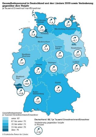 Fürth. Wie die Expertinnen und Experten des Bayerischen Landesamts für Statistik melden, sind in Bayern im Jahr 2019 rund 921 000 Menschen im Gesundheitswesen tätig. Zehn Jahre zuvor betrug die Anzahl der Beschäftigten im bayerischen Gesund-heitswesen rund 747 000. In dem Jahrzehnt vor Corona ist damit das bayerische Ge-sundheitspersonal um rund 174 000 Beschäftigte bzw. 23,3 Prozent gewachsen. Bun-desweit beträgt das Wachstum im selben Zeitraum 20,2 Prozent.
