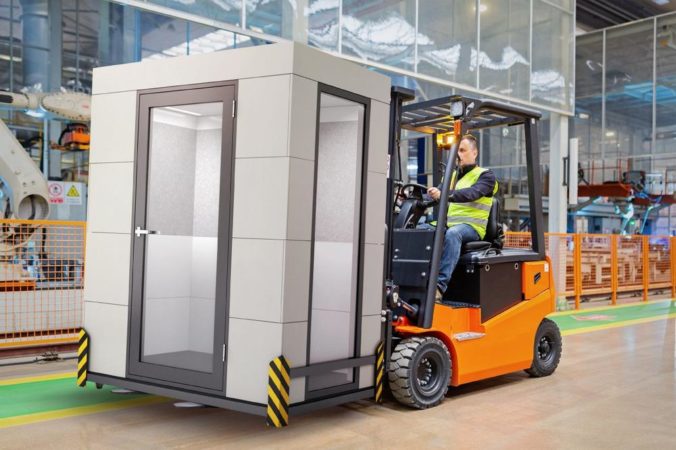 Dieser Herausforderung hat sich OFFICEBRICKS gestellt und mit der SHOPFLOOR BOX mobile Schallschutzkabinen konstruiert, die einfach und schnell nach dem „Plug & Play“ Prinzip aufgebaut sind. Einmal erstellt lassen sie sich problemlos verschieben, rauf-rüber-runter und schon steht die Kabine am anderen Ende der Werkhalle. Ob nach Wunsch auf integrierten Rollen oder mithilfe eines Gabelstaplers, Erfahrungswerte von unseren Kunden zeigen, dass es kaum zehn Minuten braucht, um die Kabine an ihren neuen Platz zu fahren. Kaum eingesteckt, kann die Arbeit direkt weitergehen. Die SHOPFLOOR BOX schafft einen Raum im Raum, der zugleich abgeschirmt, aber durch die große Glastüre und Fenster einsichtbar ist und den Blick auf die Maschinen freigibt. Dank Schallschutz und Luftfilter können Mitarbeiter in Ruhe und angenehmer Atmosphäre ihren Aufgaben nachgehen, selbst wenn in der Werkhalle ein Lärmpegel von bis zu 95 dB herrscht. Mit Schnittstellen wie Schuko-Steckdose, LAN-Verbindung, USB-Anschluss oder auch Monitoring- und Touchscreens ausgestattet, bieten die Kabinen einen vollumfänglichen Arbeitsplatz „Made in Germany“. Das macht die Box auch zu dem perfekten Raum für Shopfloor-Meetings. „Die SHOPFLOOR BOX ist immer dort, wo sie gebraucht wird. Durch diese Gestaltung der Produktionsabläufe zieht sich die Flexibilität aus den Prozessen auch durch den physischen Raum selbst und ermöglicht ein modernes Shopfloor Management“, betont Sabine Schiller, Geschäftsführerin bei OFFICEBRICKS und Initiatorin der SHOPFLOOR BOX.
