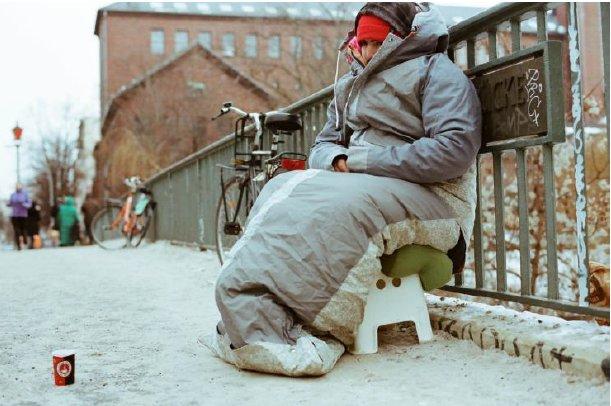 Wenn die Temperaturen in den Wintermonaten unter den Gefrierpunkt fallen, geraten Menschen ohne festen Wohnsitz auf der Straße schnell in Lebensgefahr. Es drohen schwere Erfrierungen und im schlimmsten Fall der Kältetod. Um Wärme, Schutz und Würde für jeden zugänglich zu machen, hat der niederländische Modedesigner Bas Timmer den Sheltersuit entworfen. Die Produktion folgt dabei der ökologischen Idee eines schonenden Umgangs mit Ressourcen. So bestehen die Sheltersuits aus upgecycelten Materialien, wie zum Beispiel von gespendeten Schlafsäcken oder Decken. Die Außenseite ist aus hochwertigem, atmungsaktivem Zeltstoff gefertigt und bietet mit Kapuze sowie integriertem Schal optimalen Schutz vor Wind und Regen. Das Innenfutter aus recycelten Schlafsäcken sorgt für Wärme und lindert die Kältesymptome für Bedürftige.