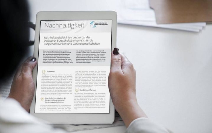 Die Nachhaltigkeitsleitlinien des Verbandes Deutscher Bürgschaftsbanken können auf der Website des VDB eingesehen und heruntergeladen werden.