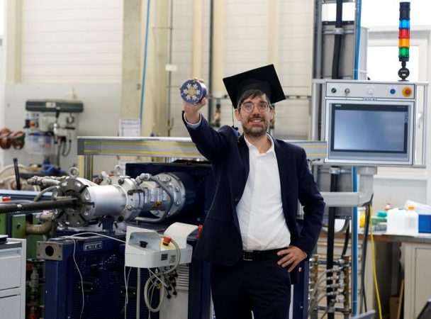 Zusammen mit Johannes Rudloff freut sich Prof. Dr.-Ing. Martin Bastian, Institutsleiter des SKZ, und Gutachter der Arbeit: „Mit seiner Arbeit leistet Johannes Rudloff einen sehr wichtigen Beitrag für die Auslegung von Aufbereitungsprozessen mittels Planetwalzenextruder, aber auch für die Fortentwicklung dieses Verfahrens, z. B. in Richtung chemisches Recycling. Durch das Zusammenführen der ingenieurwissenschaftlichen Disziplinen Maschinenbau, Kunststofftechnik und Simulation in seiner Arbeit konnte er seine hervorragende Kompetenz in den relevanten Themengebieten nachweisen. Das alles erfüllt mich sehr mit Stolz.“ Darüber hinaus freue er sich, dass die ersten Anwendungen der wissenschaftlich entwickelten Simulationsmethodik in der industriellen Forschung des SKZ bereits erfolgt seien. „So konnte z. B. ein neues Verfahren zur PVC-Direktextrusion unter Anwendung der Modelle entwickelt werden“, sagt Bastian.