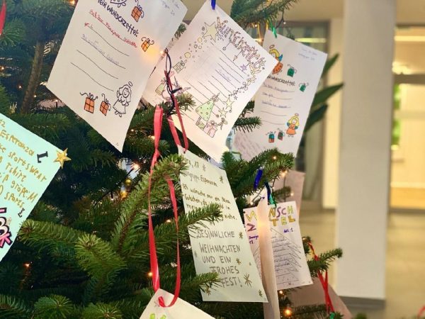 Die Kinder und Jugendlichen aus St. Mauritz wünschen sich im Rahmen der Aktion ein persönliches Weihnachtsgeschenk. Mit den Wunschzetteln wird der Weihnachtsbaum im Foyer bei Eucon geschmückt. Die Mitarbeitenden bei Eucon erfüllen den Kindern anschließend ihre Wünsche.
