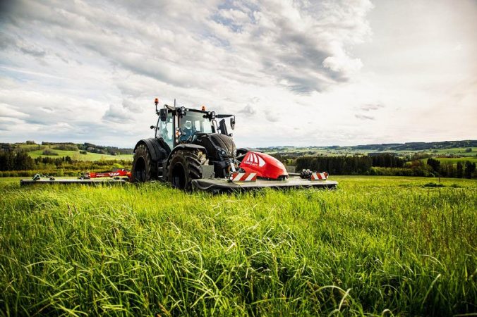 Die komplett neu konstruierte RAMOS-FP-Mähwerksreihe mit 3,10 m Arbeitsbreite ist, im Vergleich zu seinem Vorgänger, standardmäßig mit einem kürzeren Direkt-Anbaubock ausgestattet. Für die Modelle mit Zinken- und Rollenaufbereiter wurde ein angepasster Bock entworfen. Der so optimierte Abstand sorgt für ein kompaktes Gespann von Traktor und Maschine mit einem nah am Traktor liegenden Schwerpunkt. Das verbessert die Mähwerksführung, verringert zusätzlich die Belastung für Schlepper und Mähwerk und begünstigt den Einsatz von leichteren Traktoren. Drei Koppelpunkte an dem Oberlenker und zwei an den Unterlenkern sowie ein wählbarer Links- oder Rechtslauf unterstreichen die Kombinationsfähigkeit dieser Mähwerksreihe. Für eine konstante, optimale Anpassung des Auflagedrucks und damit geringe Futterverschmutzung kann das Mähwerk wahlweise mit einer federbasierten oder hydropneumatischen Entlastung ausgestattet werden. Durch den erweiterten Pendelweg von +/- 7,5° folgt das Mähwerk der Bodenkontur auch in kupiertem Gelände und in Hanglagen. Auf der Straße verhindert die feinjustierbare Federzentrierung zuverlässig ein Aufschaukeln des Mähwerks. Das neue Herzstück, der robust konstruierte und flache Stirnrad-Mähbalken sorgt für einen gleichmäßigen Schnitt und optimalen Futterfluss. Die effiziente Kraftübertragung des neuen Antriebskonzepts ermöglicht ein kraftstoffsparendes Mähen bei reduzierter Drehzahl von 850 U/min und den Einsatz auch von Traktoren mit geringeren PS-Zahlen.