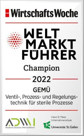 GEMÜ wird zum sechsten Mal in Folge im Bereich „Ventil-, Prozess- und Regelungstechnik für sterile Prozesse“ als Weltmarktführer ausgezeichnet. Unternehmen, die im Weltmarktführer-Index der Universität St. Gallen als Weltmarktführer gelistet werden, sind die Nummer eins oder zwei in mindestens einem relevanten Marktsegment. Außerdem müssen Unternehmen, die als Weltmarktführer ausgezeichnet werden, ihren Stammsitz zumindest zum Teil in Deutschland oder in der DACH-Region haben und einen Jahresumsatz von mindestens 50 Millionen Euro erwirtschaften. Von diesem Umsatz müssen mindestens 50 Prozent im Ausland und auf mindestens drei Kontinenten erzielt werden.