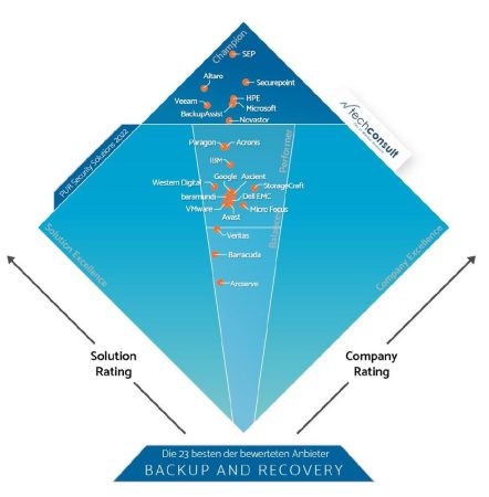im Bereich des Lösungsnutzens 81,4 von 100 möglichen Punkten und damit die höchste Bewertung im Wettbewerbsvergleich. So erzielt der Hersteller von plattformunabhängigen Hybrid Backup- und Disaster Recovery-Lösungen „Made in Germany“ zu seinem 30-jährigen Jubiläum in diesem Jahr erneut einen herausragenden Erfolg, der durch Kunden- und Anwender-Feedback ermittelt wurde. Insgesamt wurden über 2.000 Anwenderunternehmen befragt, die mehr als 50 Kriterien in 14 Unterkategorien bewertet haben. Die Studie basiert auf Endanwender-Befragungen mittels eines repräsentativ angelegten Panels in Unternehmen aller Größenklassen und Branchen.