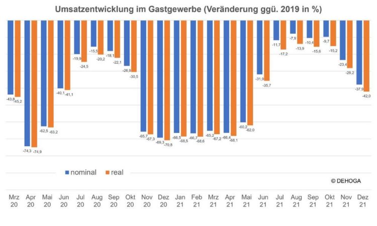 - Umsatzminus 2021 gegenüber Vorkrisenjahr 2019 beträgt real 40,3%