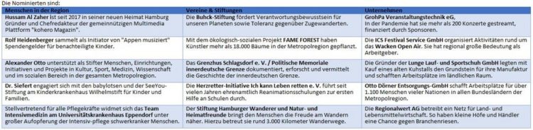 Lutz Bethge, Vorsitzender des Unternehmensbeirats der Metropolregion Hamburg, dem Ideengeber für den Preis zieht Zwischenbilanz: „Die Wahl zu den Metropolitaner Awards geht auf die Zielgerade. Ich freue mich sehr über das große Interesse. Es wurden erneut deutlich mehr Nominierungen eingereicht und auch die hohe Wahlbeteiligung zeigt das Interesse der Bevölkerung an Ihrer Metropolregion und Ihren tollen Kandidatinnen und Kandidaten.“
