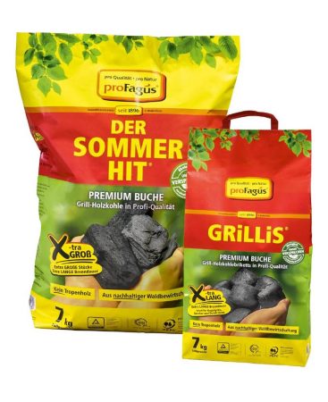 Für alle proFagus®-Fans gibt es zwei Produktneuheiten auf dem Grillmarkt: Die Buchen Grill-Holzkohle und die Buchen Grill-Holzkohlebriketts in 7 kg Beuteln. Die extra großen Stücke in DER SOMMER HIT® haben Profi-Qualität und garantieren besonders lange und intensive Brenndauer. Durch schnelles Anbrennen und Durchglühen ist die Grill-Holzkohle ideal für direktes Grillen von Grillgut. Die beliebten GRiLLiS® sorgen aufgrund ihrer speziellen Beschaffenheit für eine extra lange und gleichmäßige Brenndauer und eignen sich damit hervorragend für ausgiebige Grillerlebnisse mit Dutch Ovens, Kugelgrills und Smokern.