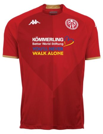 Das neue Kappa Heim Trikot, welches im klassischen Rot des 1 FSV Mainz 05 gehalten ist und als Muster das Pattern des Vereins sowie goldene Applikationen in Referenz auf die goldene Stadt Mainz enthält, wird in regulärer Brustbeflockung ab Mitte Juli in den 05 ER Fanshops sowie online unter shop mainz 05 de erhältlich sein.