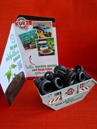 Auf die Messebesucher warten interaktive Angebote: Das Unternehmen stellt einen Playmobil-Container auf, der mit Spielzeug-Altreifen gefüllt ist. Besucher können raten, wie viele Reifen sich in dem Container befinden. Wer richtig liegt, erhält einen tollen Preis. An einer bunten Fotowand mit Bildern von bepflanzten Autoreifen gibt es die Möglichkeit, Selfies zu machen und eine von drei Quad-Fahrten zu gewinnen.