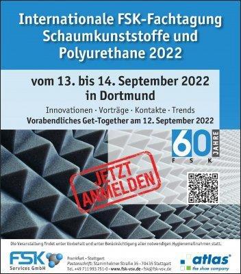 Die Jubiläumstagung zum 60-jährigen Bestehen des Fachverband Schaumkunststoffe und Polyurethane e.V. (FSK) findet am 13. und 14. September 2022 in Dortmund statt. Dem Anlass gebührend hat der FSK ein herausragendes Programm zusammengestellt: Mit zu den Highlights gehören die Podiumsdiskussion mit ausgewählten Branchenexperten und eine Werksbesichtigung bei der Firma Atlas – the shoe company.