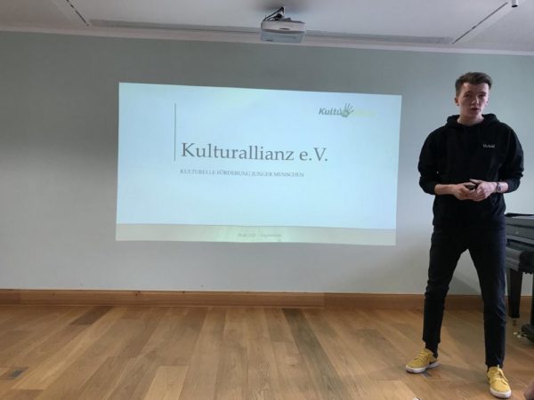 Luca Piwodda, stellte den Verein Kulturallianz e.V. vor, der mit Veranstaltungen wie Konzerte und Workshops, Räume zum Austausch und zur Annäherung zwischen den Generationen schafft. Die Kultursaison 2022 wird mit einem bunten Programm aus Konzerten, Podiumsdiskussionen, Theater und Film, Buchlesungen und vieles mehr fortgeführt.