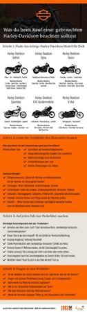 Auf der Suche nach einer gebrauchten Harley-Davidson stößt man oft auf Angebote überregionaler Anbieter. Gerade in diesen Fällen ist es wichtig, mit klaren Fragen vorab Informationen zur Entscheidungsfindung zu bekommen. Hierbei sollte erfragt werden, ob der Verkäufer auch der Eigentümer ist oder nur der Besitzer. Weitere Fragen beschäftigen sich mit der Modellbezeichnung, dem Baujahr, der Leistungsvariante und der Erstzulassung. Auch der tatsächliche Kilometerstand und die Anzahl der Vorbesitzer können dem Käufer wichtige Erkenntnisse liefern.