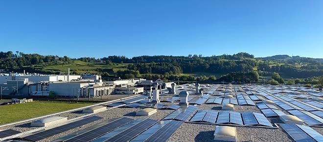 Wir nutzen erneuerbare Energien, sowohl bei der Wärmeversorgung der Betriebsgebäude durch ein Fernwärmenetz, als auch bei der Stromerzeugung mit unserer eigenen Photovoltaik-Anlage. Dieser so selbst erzeugte Strom aus Sonnenlicht wird nicht nur in die Hauselektrik eingespeist, sondern dient auch der Versorgung der E-Autos unserer Mitarbeitenden. Dafür haben wir 10 Ladestationen eingerichtet, die gerne genutzt werden.